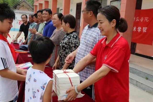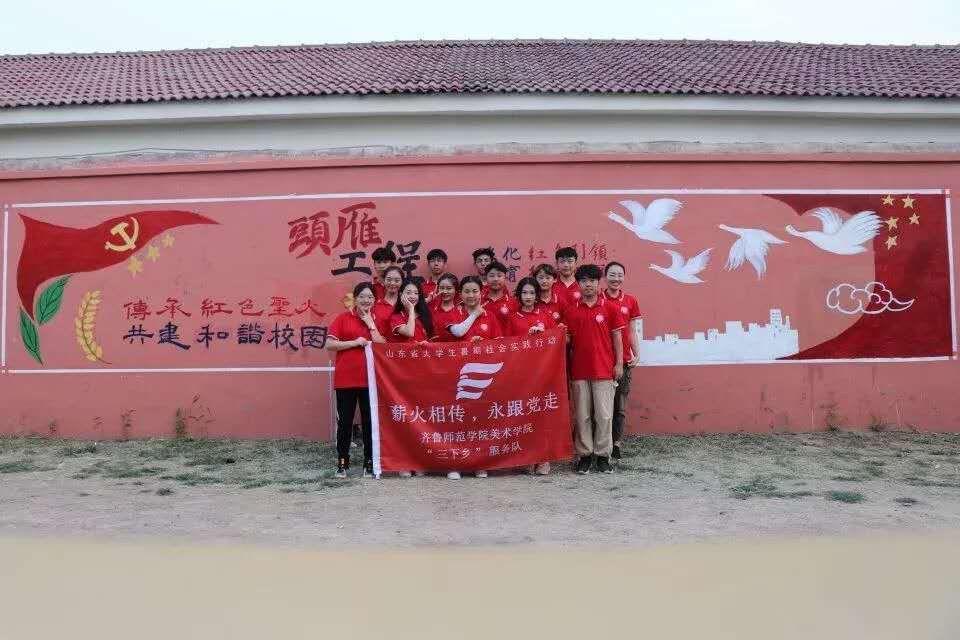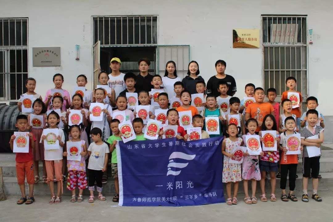 为深入学习贯彻习近平新时代中国特色社会主义思想,引领教育广大青年学生切实感受新中国成立70周年取得的巨大成就,增强“四个意识”、坚定“四个自信”、做到“两个维护”,在加强志愿服务中增强责任感和使命感。齐鲁师范学院美术学院积极响应团中央号召,充分发挥教育特色,引导青年学生服务农村基础教育,培养大学生吃苦耐劳的精神和服务社会的意识,提高团队合作与协调能力,组织了由党总支副书记胡颖杰书记带领的“一米阳光”与团总支书记梅茹书记带领的“薪火相传 永跟党走”大学生三下乡服务队。