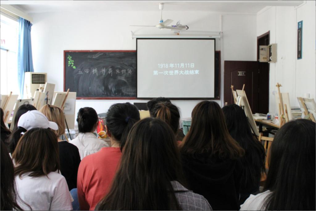 为纪念五四运动,2019年4月18日,美术学院学生会组织2018级各班观看了“《我的1919》”的主题团日活动。