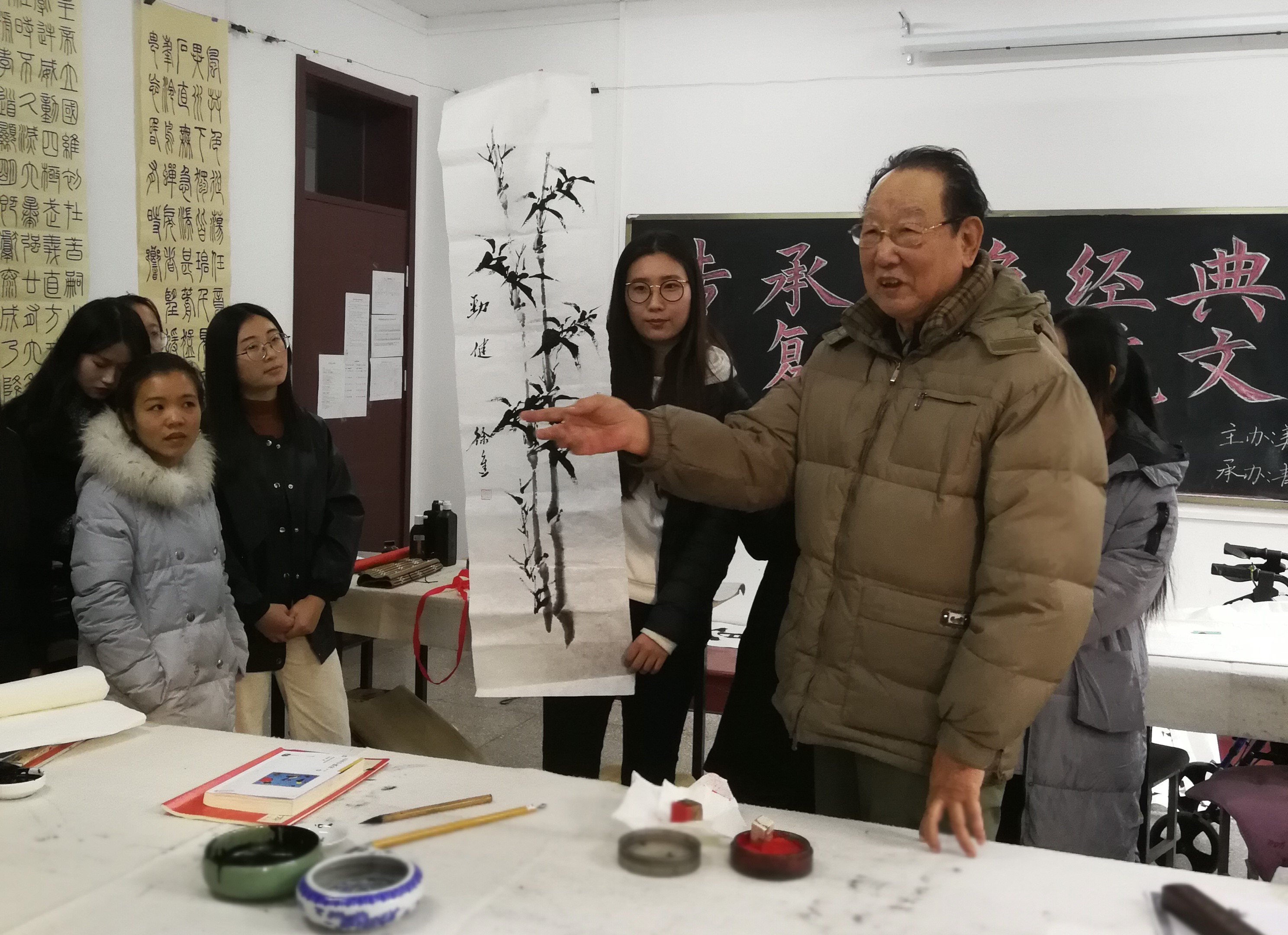 活动中老院长向同学们展示了他深厚的书法绘画功底,并与在座的书法班的同学进行了热情的交流与互动,声情并茂地讲述了自己学习历程的艰苦,同学们深刻感受到了传统文化传承的重要性。最后臧晓琳老师与徐老院长进行了亲切的交谈,老院长讲述了他的入党历程与生活经历,同学们对这位有七十多年党龄的老党员表示钦佩。
