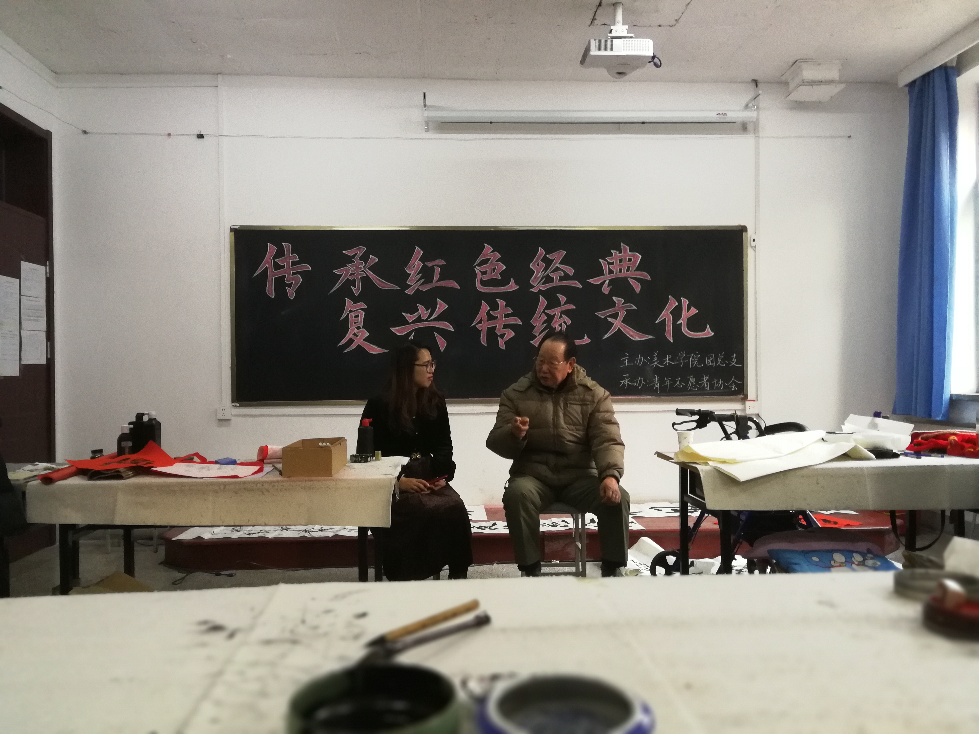 为继承和弘扬中华民族优秀传统文化与红色精神,齐鲁师范学院美术学院于12月26日下午两点在教学楼105教室举办了以“传承红色经典,复兴传统文化”为主题的专题教育活动。本次活动特邀原齐鲁师范学院院长徐进院长,以书画论传统,以经历话精神。美术学院辅导员臧晓琳老师、青年志愿者协会成员和17级书法班同学参加了此次教育活动。