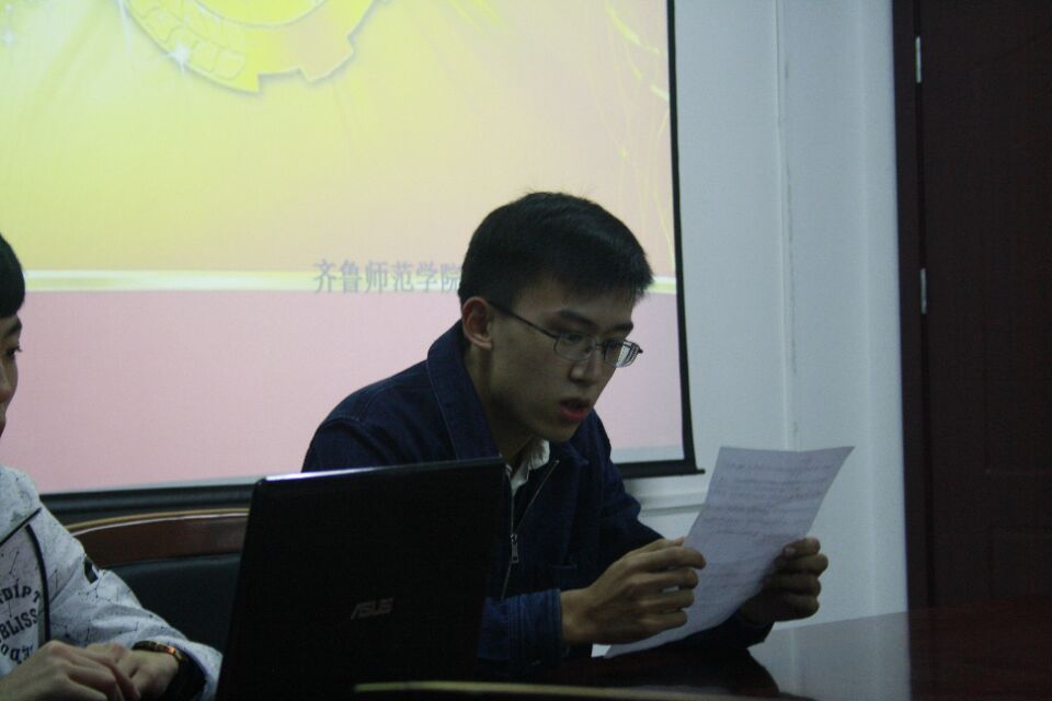 会议伊始,主持人就当代大学生的责任和共青团员的义务展开了这次座谈。会议的内容围绕同学的发展变化等与自身息息相关的内容展开。同学们就济南市的创城,学院的本科合格评估,自身的人生理想等问题各抒己见,进行了热烈的讨论。