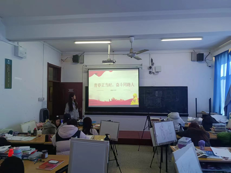为贯彻落实习近平总书记“新时代是奋斗的时代”的理念,激励同学们勇敢追寻梦想,在奋斗中挖掘自身潜力,实现个人价值与目标,11月21日,美术学院组织“青春正当时,奋斗同路人”主题政治学习活动。