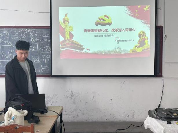 为激发团员青年强国有我的青春激情,激励同学们在强国建设、民族复兴伟业中勇当先锋队突击队,11月4日,2023级视觉传达设计校企合作班团支部在教学楼201教室开展“青春献智现代化,改革深入青年心”主题团日活动。