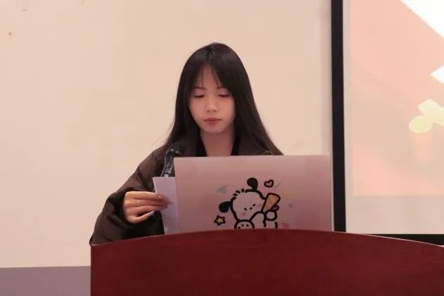 会议第一项,第四届自律委员会主席团成员杨雨围绕“如何成为优秀大学生干部”这个话题展开阐述。她指出,学生干部不仅是老师的左膀右臂,也是整个学生中的中坚力量,并且勉励在座同学们要珍惜学习机会,认真钻研业务知识,不断提升自身综合素质。杨雨重点强调,学生干部要以身作则、榜样引领,用自己的实际行动影响和带动周围的同学,共同营造良好的班风、学风,努力做一名政治合格、信念坚定、行动有力的青年马克思主义者。