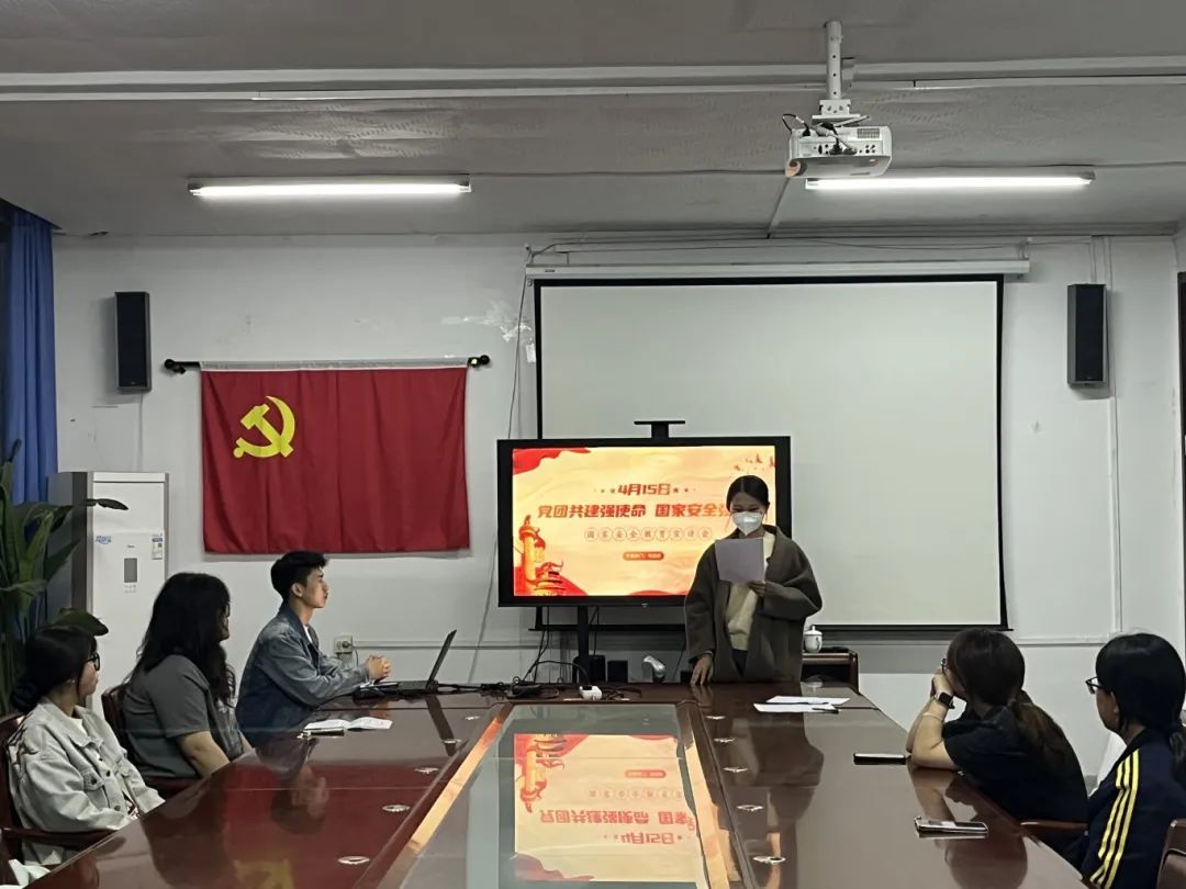 接着,学生党员陈月瑶同志详细阐述总体国家安全观的内涵,强调党员在维护国家安全中的先锋模范作用,鼓励同学们积极向党组织靠拢,从思想和行动上筑牢国家安全防线,为国家安全贡献青春力量。
