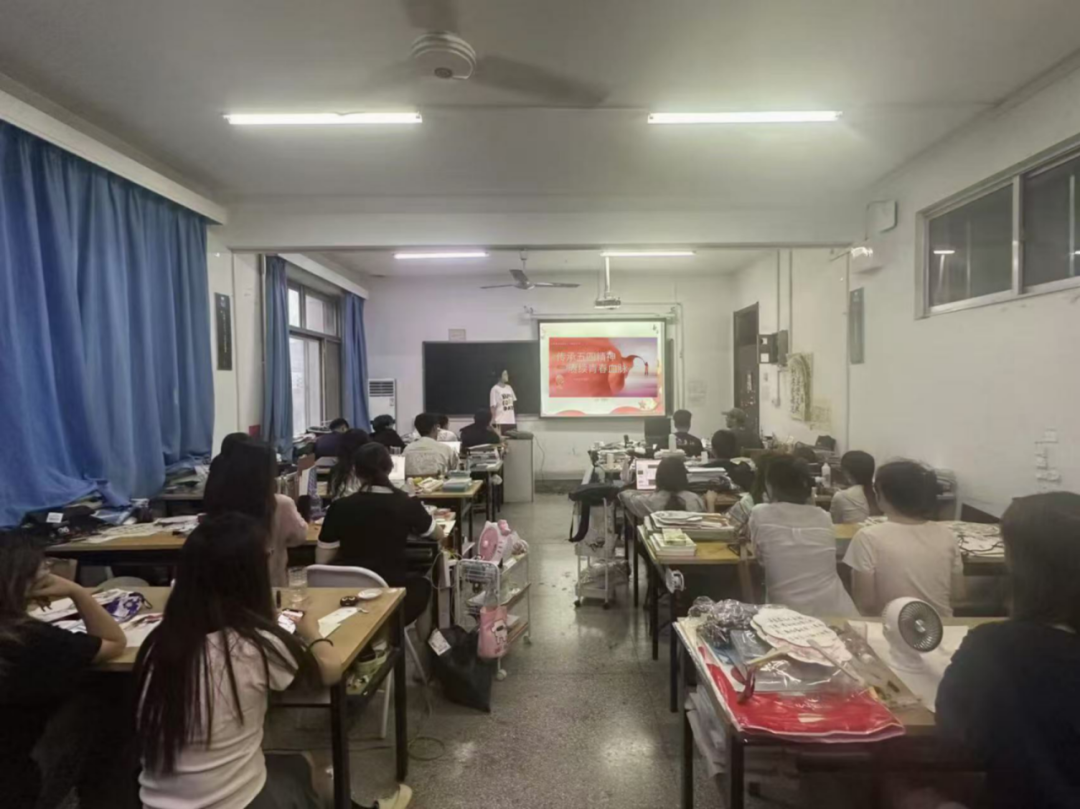 活动伊始,各班同学在团支书的引领下,共同观看五四精神主题纪录片。影片中,青年学子为国家独立、民族觉醒振臂高呼的画面、革命先辈们抛头颅、洒热血的英勇事迹,深深震撼着每一位同学的心灵。