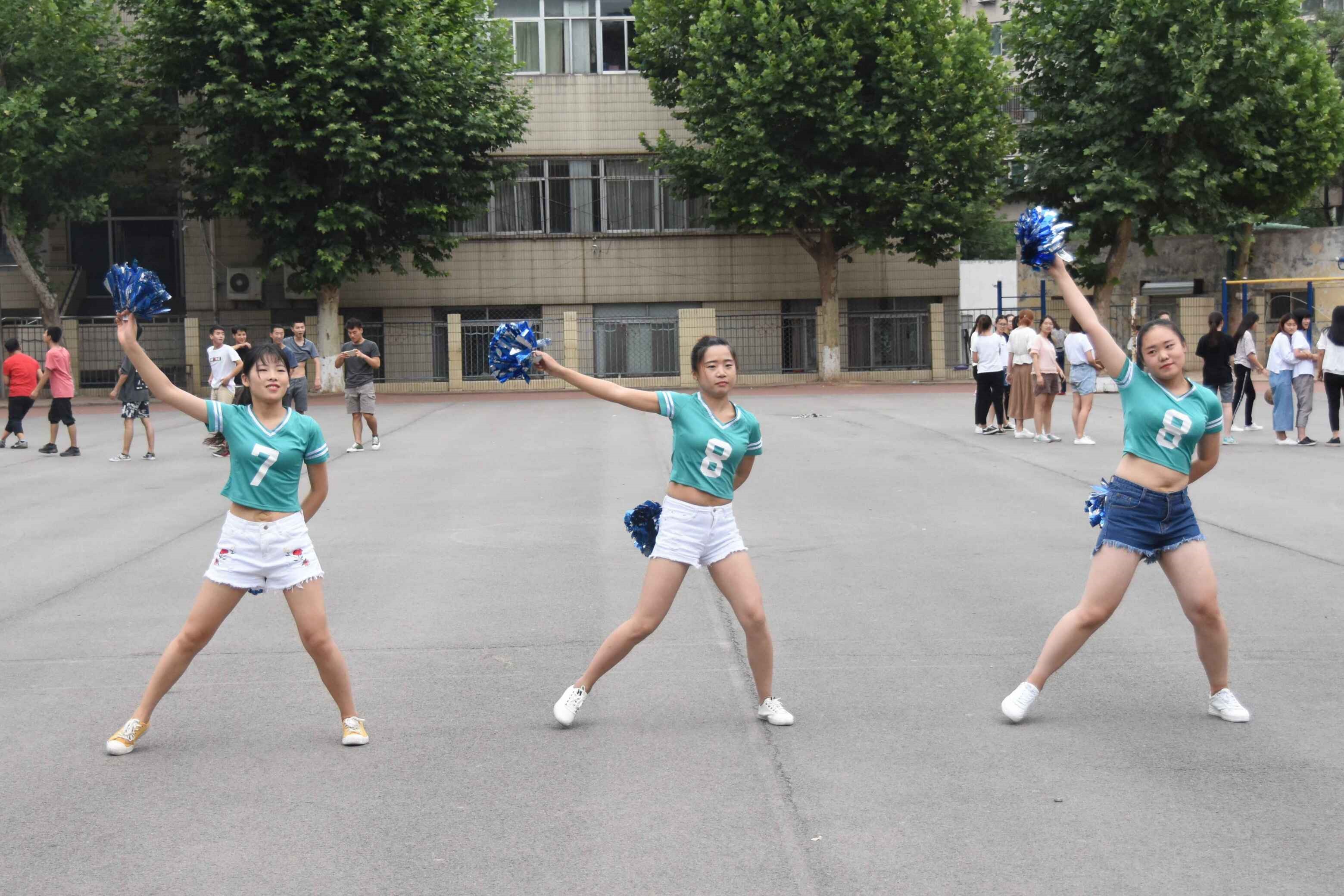 看这边~在我们球员中场休息时间,街舞社带来了活力十足的健美操为球员们加油呐喊打气啦!看,是不是一道靓丽的风景线呢~