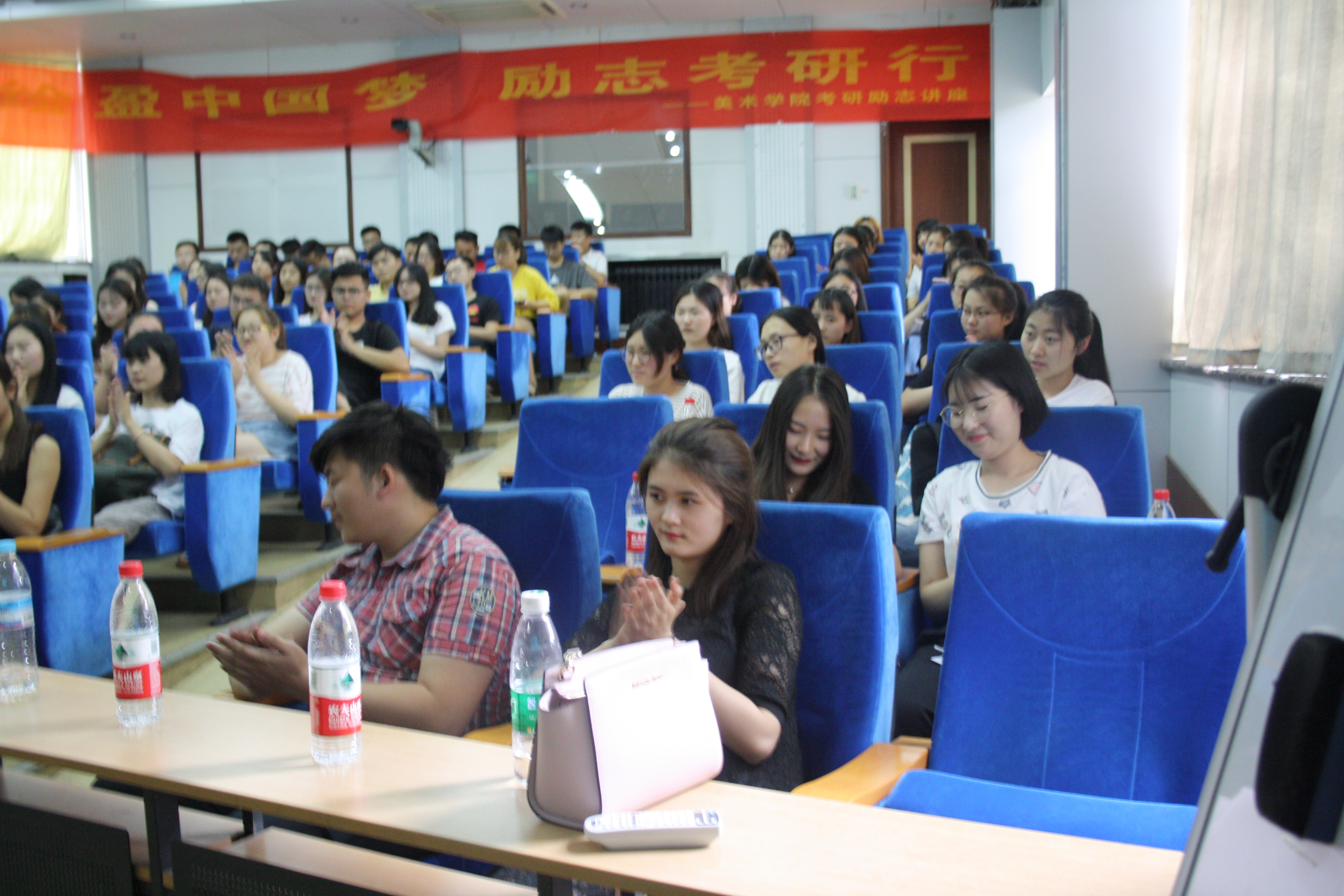 6月4日,美术学院在图书馆第一报告厅举办了一场针对2015级美术学和书法学专业以及2016级美术学和书法学专业有考研意向同学的主题为“绘盈中国梦,励志考研行”的考研讲座。我院众多有考研意向的同学参加了本次讲座。