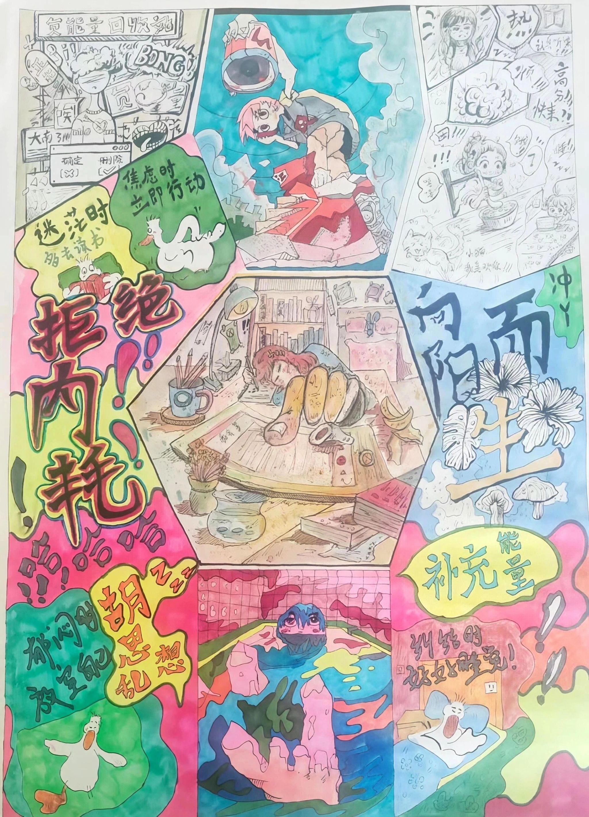 让画笔划破情绪的阴霾,用拼贴拼凑内心的晴朗。这场情绪释放绘画活动,是美院学子与自我的深度对话,更是一场温柔的心灵治愈。愿大家在色彩的世界里卸下行囊、释放真我,在创作的过程中汲取力量、收获慰藉,让压力随笔墨消散,把快乐妥帖珍藏,以更昂扬的姿态奔赴青春旅程。