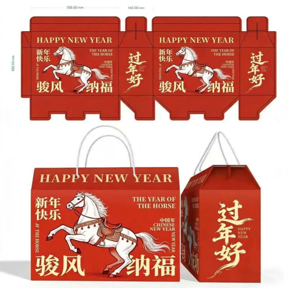 2025级工艺美术班毛语桐以“骏风纳福”为核心主题,结合马年生肖文化与春节礼赠场景,打造兼具传统年味、视觉美感与实用功能的礼盒产品,搭配红金配色与骏马图案,辨识度高,兼顾质感与性价比,具备明显差异化优势。