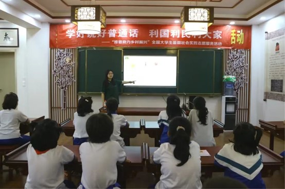 为帮助学生更准确地掌握普通话的发音和语调,提升口语表达能力,在国家语言文字推广基地(齐鲁师范学院)的大力支持下,8月6日,“强国先强语,推普助振兴”服务队开展“声”临其境,音韵铿锵”趣味普通话练习活动。