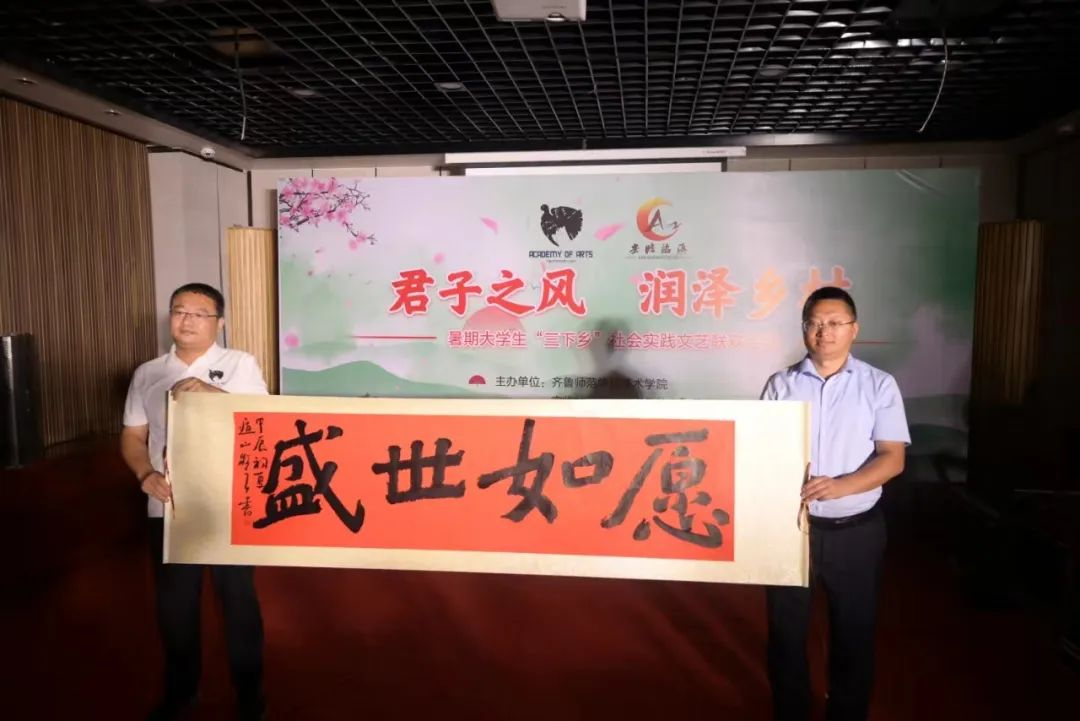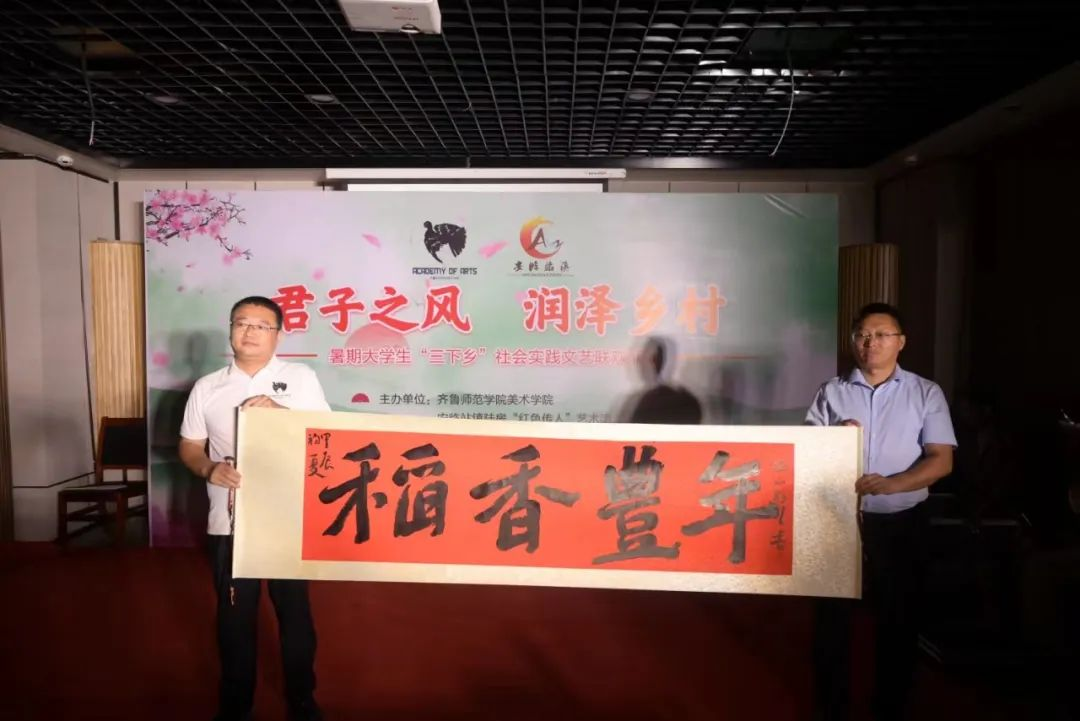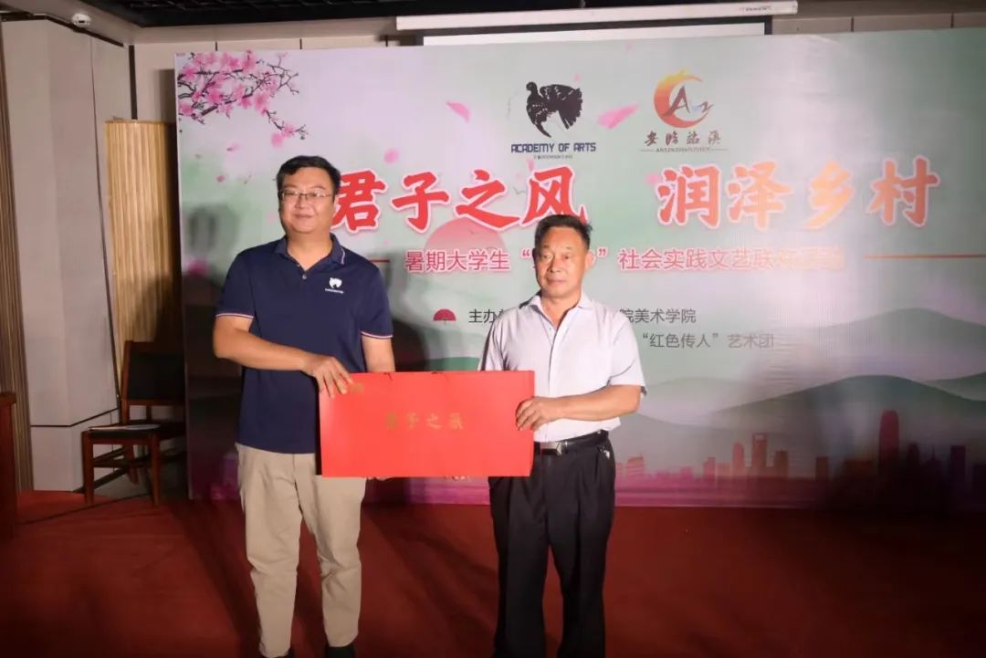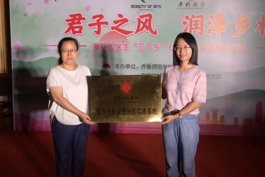 值此联谊之际,美术学院与安临站镇举行百万大学生进社区实践基地揭牌暨捐赠仪式。