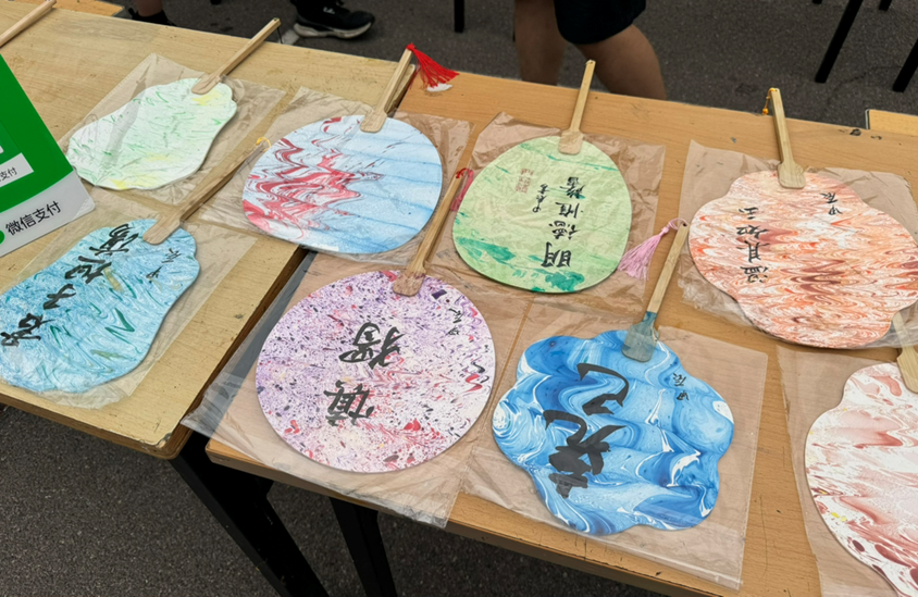 同学们纷纷展示自己的好物,用心装扮着自己的摊位,文具、书籍、衣物、饰品、生活工具,每一样物品都凝结着大学生活的点点滴滴,吸引着同学们前来“淘宝”。除了自身的二手物品之外,美术学院学院特别设置了文创集市,精致美丽的各样扇子将中国传统文化与漆扇工艺相结合,给予人富有底蕴的美感体验,吸引了不少同学的目光。