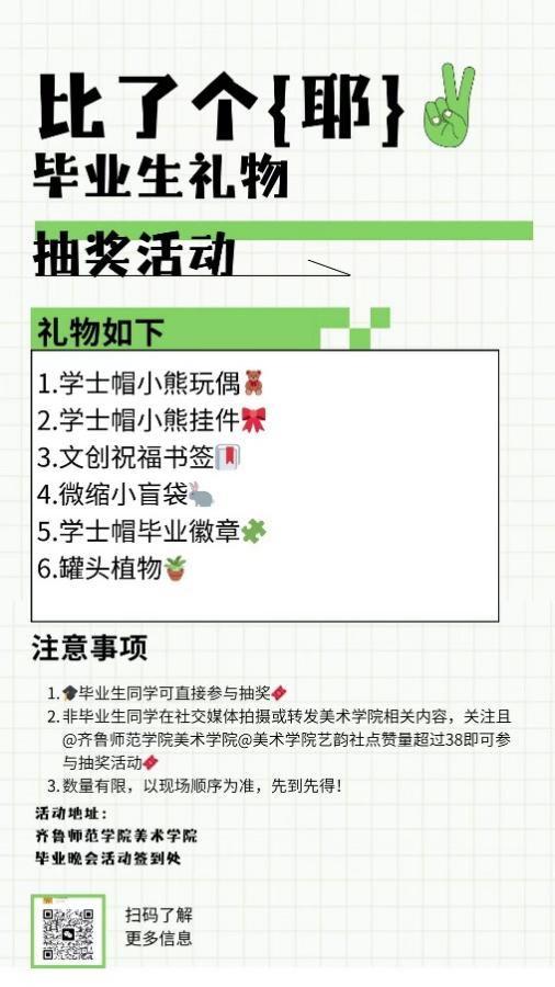 (3)转发此篇公众号文章并配文齐鲁师范学院美术学院辞盈摘星、前程似锦毕业礼物来了~即可抽奖