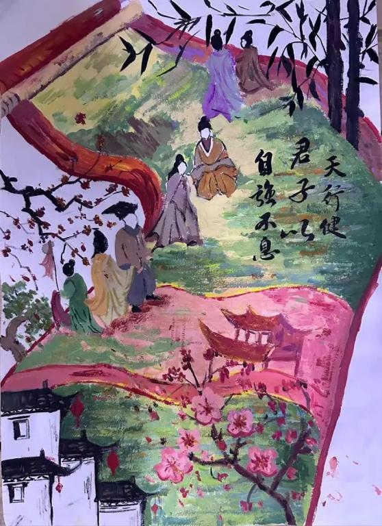 每幅作品在保持传统文化特色的同时又注入现代元素,充分展现了学生的传承精神与创造能力。通过书画展示、笔墨体验的形式,让学生用画笔描绘心中君子,用书法传递文化温度。