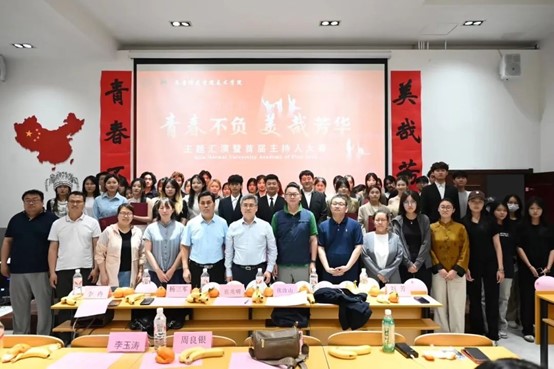 燃激情岁月,传五四薪火;青年砥砺前行,勇担时代责任,5月16日,美术学院“青春不负·美哉芳华”主题汇演暨首届主持人大赛在阶梯教室成功举办。齐鲁师范学院副校长张兆明,历下校区管理办公室主任张汝山,美术学院党委书记辛源,美术学院院长杨三军,美术学院副院长李冉,美术学院办公室主任刘芳,美术学院院长助理王华军,美术学院办公室副主任周良银,美术学院教务员马秀琴,辅导员李玉涛、刘婷、杨茜及学生代表出席并参加活动。