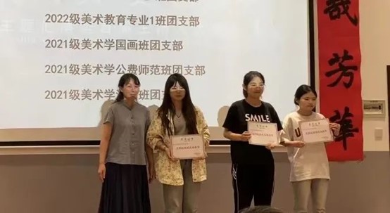 红五月,君子美,学榜样,共奋进。在学校五四表彰名单中,美术学院荣获2023年度五四优秀团总支,6个团支部获2023年度五四红旗团支部,优秀共青团员63人,优秀共青团干部7人,2023年度青年志愿者优秀个人奖12人。借此机会,在学院内部对部分获奖人员进行现场颁奖。