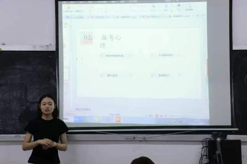 考入江西科技师范大学美术与书法专业的李霞同学围绕“作为一个班级干部和党员是如何协调工作和学习的时间”这一话题进行阐述。她向同学们分享考研平衡术,即制定合理计划、高效利用碎片时间、学会拒绝与委托。
