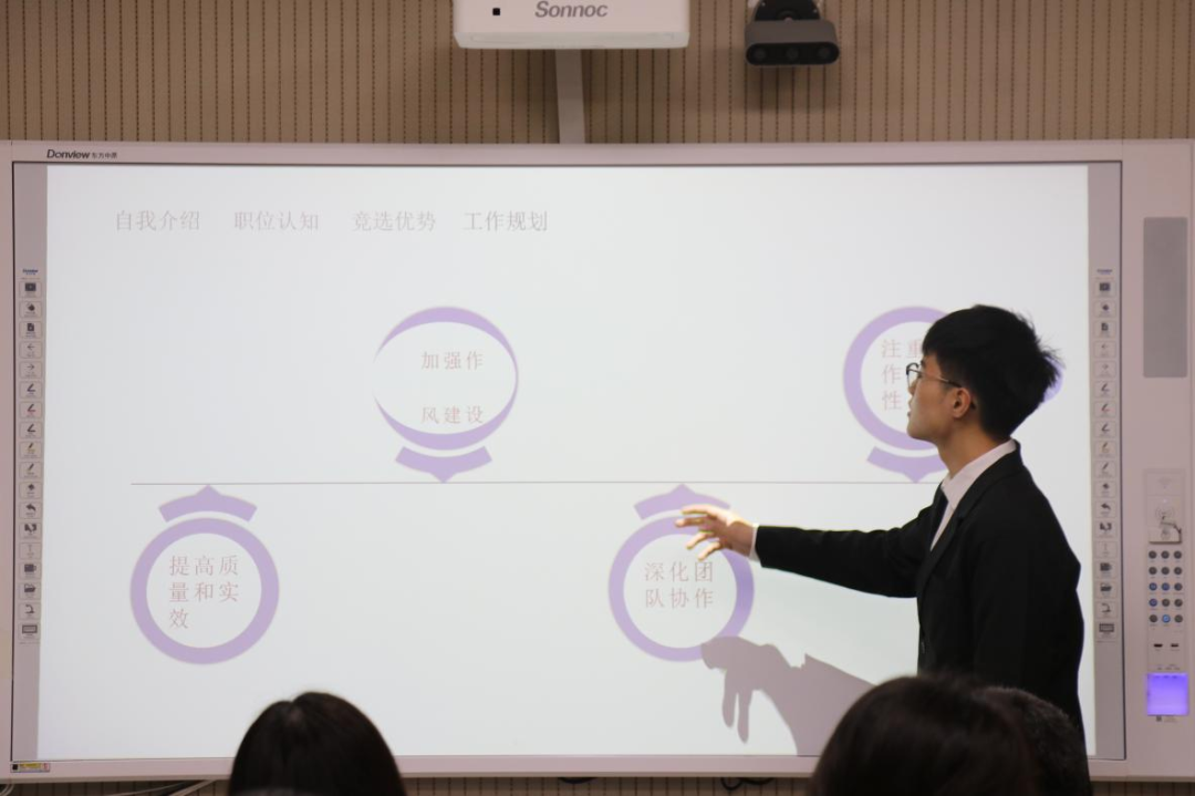 本次竞选分为演讲、提问环节,着重考核主席团竞选人的统筹规划能力、随机应变能力、口头表达能力。各位竞选人信心饱满,各抒己见,从自我介绍、任职情况、个人优势、岗位认知、工作规划等各方面进行演讲展示。评委通过多角度提问,对各位竞选人进行了全面细致的考察,各位竞选人思路清晰,冷静回答,充分展现了作为学生干部的素质和能力。