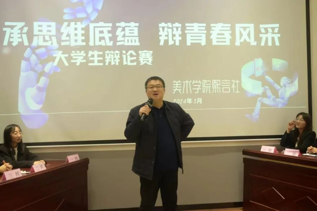 辛源对本次活动的顺利举办表示肯定,对辩手们的充分准备表示赞扬,并从辩题意义、辩论技巧、临场反应、比赛台风等方面予以点评。他表示,美育是培养审美能力和美学素养的重要途径,人工智能经过爆炸式的增长,重塑了学习、工作方式,对艺术创作形成了不容忽视的影响。本次辩题体现时代特征,聚焦学院专业发展,具有审视技术与人工关系的重要意义。同时他对学生队伍寄予厚望,希望通过搭建多样化平台,凝聚学生队伍,激发队伍活力,提升队伍向心力、战斗力,共建教育共同体。