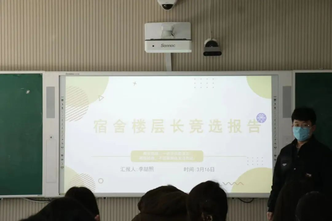 竞选现场,竞选者从个人经历、自我定位、岗位认知、竞选优势以及对宿舍楼层长未来工作计划等方面进行了精彩演讲。与会人员围绕宿舍安全、宿舍人际关系、宿舍危机事件等对竞选者依次提问,各位竞选者针对提出的问题各抒己见,展现了个人的逻辑思维与工作能力。