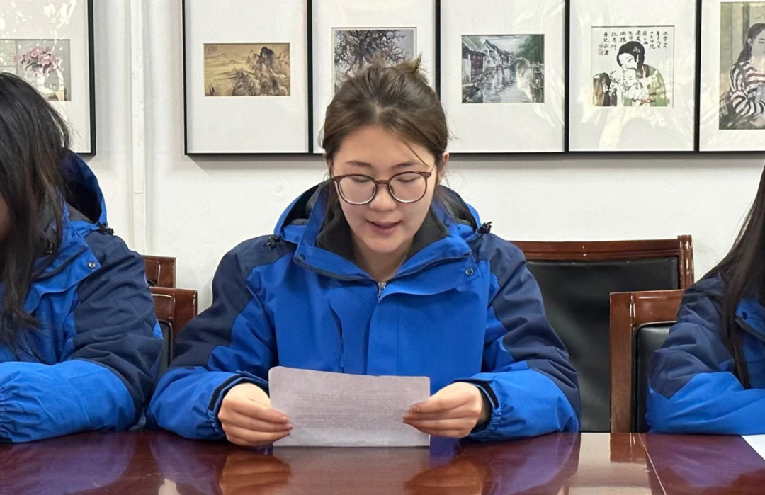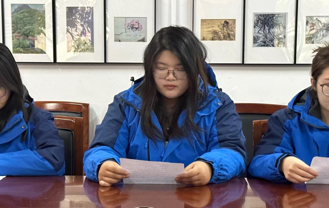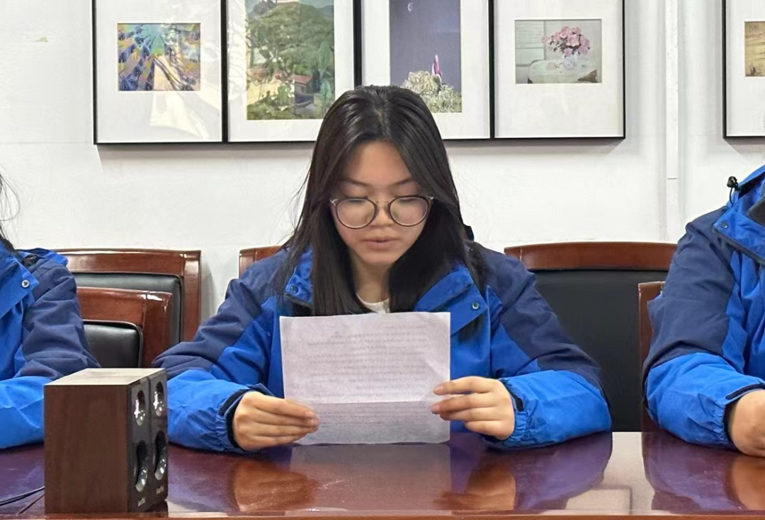 实习支教团学生邢艺歆作为学生党员代表发言。她表示,参与援疆工作是大学生党员践行党的宗旨和使命的具体行动,体现了为人民服务、为国家做贡献的精神。要承担起责任,面对各种挑战,培养担当精神和责任感,将所学知识运用到实践中,以实际行动为支教任务做出贡献。