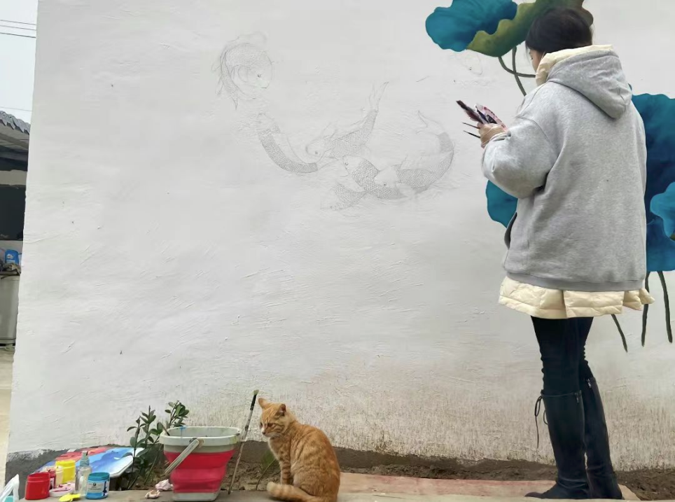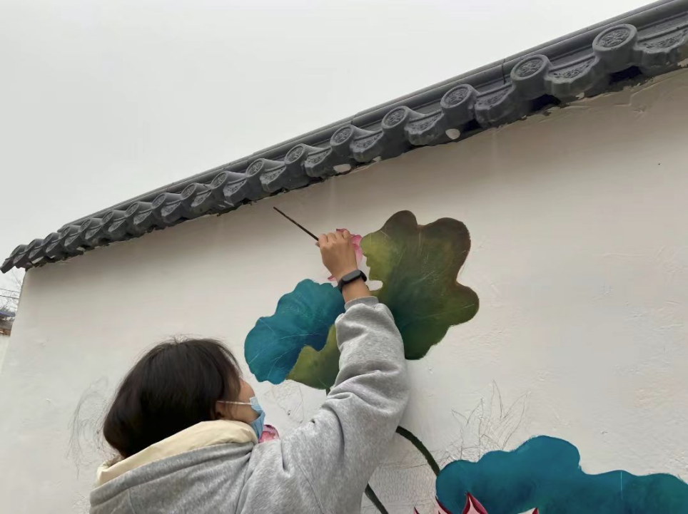 美术学院“归雁成行,乡村竞生辉”实践队来到了青岛黄岛区于村镇中心附近,执笔为乡村振兴增添活力色彩。