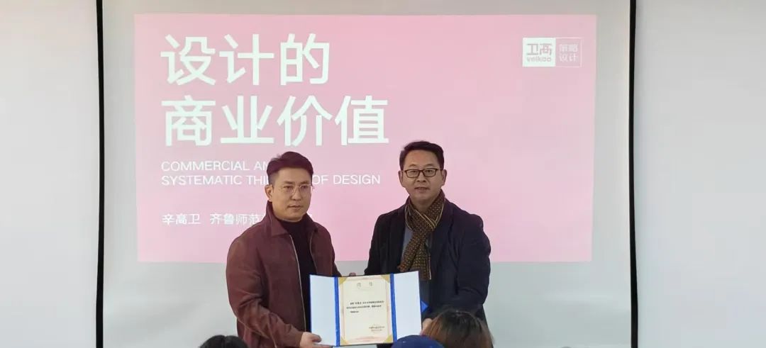 美术学院院长杨三军点明了此次包装设计讲座研讨会对包装设计专业学生后续发展的重要性,他着重指出,设计与商业需求的紧密融合乃是大势所趋,学生们应志在成为能创造卓越商业价值的设计师。随后,杨三军院长将齐鲁师范学院包装设计专业实践导师聘书颁发给辛高卫先生,正式开启了这场知识与实践交融的交流之旅。