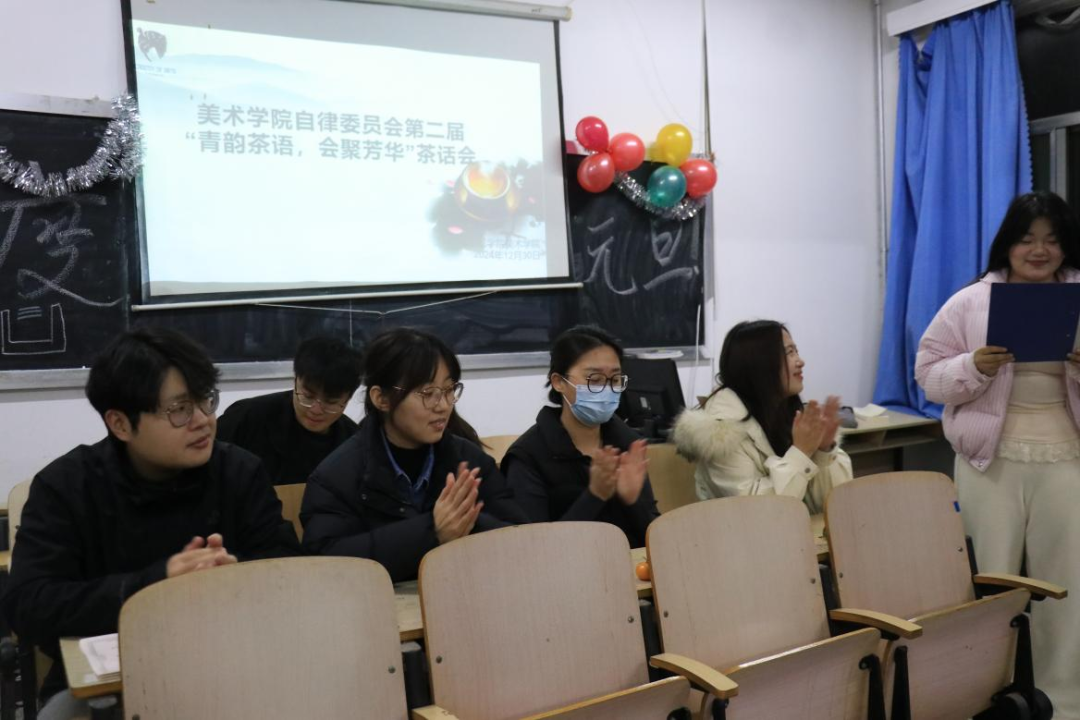在大家的欢声笑语中,本次茶欢会圆满结束!活动不仅增强了各部门之间的沟通与协调能力,更激发大家的创新思维和工作热情。未来,自律委员会的每一位成员会一直带着这份团结与活力,持续提升工作质量,为美术学院学生工作奠定扎实的基础。
