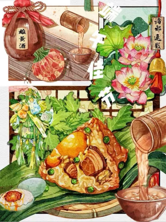 本次征集聚焦 “端午” 主题,同学们从包粽子、赛龙舟、挂艾草等传统民俗中汲取灵感,作品形式涵盖绘画、书法、设计等多个领域。同学们发挥出自己的创造力和想象力,创作出具有个人风格的艺术作品,展现了同学们对传统文化的理解。