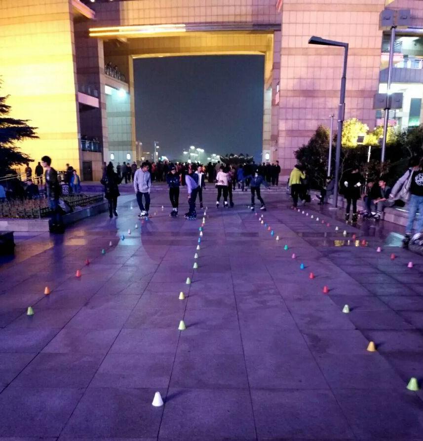 4月22晚七点在学校里组织好队伍,一起刷街去泉城广场。到达目的地后由轮滑社社长刘森.副社长吕丹丹等成员对大一新生进行刷街前半段的技术总结与失误评估,以便于在实践中纠正一些平时不会暴露的问题,在刷街的过程中会更好的感受平时的练习时没有注意的问题,在指出并改正的时候才会得到更加深刻的记忆。