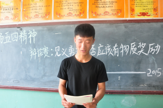 为促使大家进一步更深入的了解五四历史,在班会一开始,杨增锐便为大家讲解了五四活动与五四精神,之后题,进行以“见义勇为是否应该得到奖励”为话题进行辩论赛,以李钊为头的正方坚持应该得到奖励与以刘文俊为头的反方坚持不应该得到奖励进行激烈辩论,正反双方以敏捷的思维,流利的语言回答了一个个犀利又暗藏玄机的问题。接下来,辩论赛迎来了高潮 ——自由辩论。