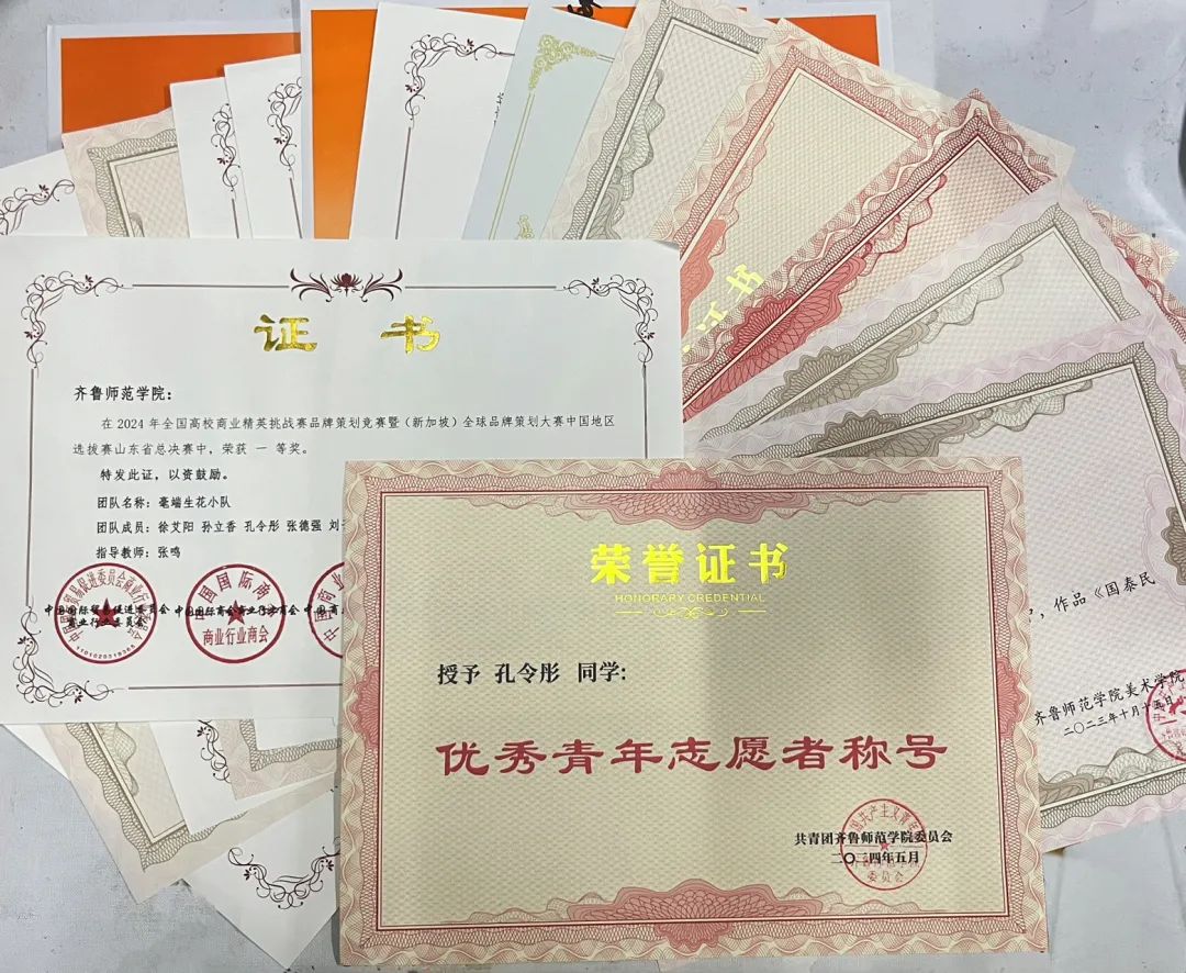 在学习之余,她深知不光要深耕本专业的知识,还要注重交叉学科的学习。因此,她积极参加竞赛科研活动。深知“人生在勤,不索何获”的道理。她积极学习品牌策划等专业知识,认真研究往届优秀获奖作品。笔耕不辍,作为队长组队参加第十八届全国高校商业精英挑战赛文旅与会展创新创业实践竞赛,获得山东省总决赛一等奖。除此之外,她还获得2024年全国高校商业精英挑战赛品牌策划竞赛暨(新加坡)全球品牌策划大赛山东省总决赛一等奖、2024年全国高校商业精英挑战赛品牌策划竞赛暨(新加坡)全球品牌策划大赛中国地区三等奖。